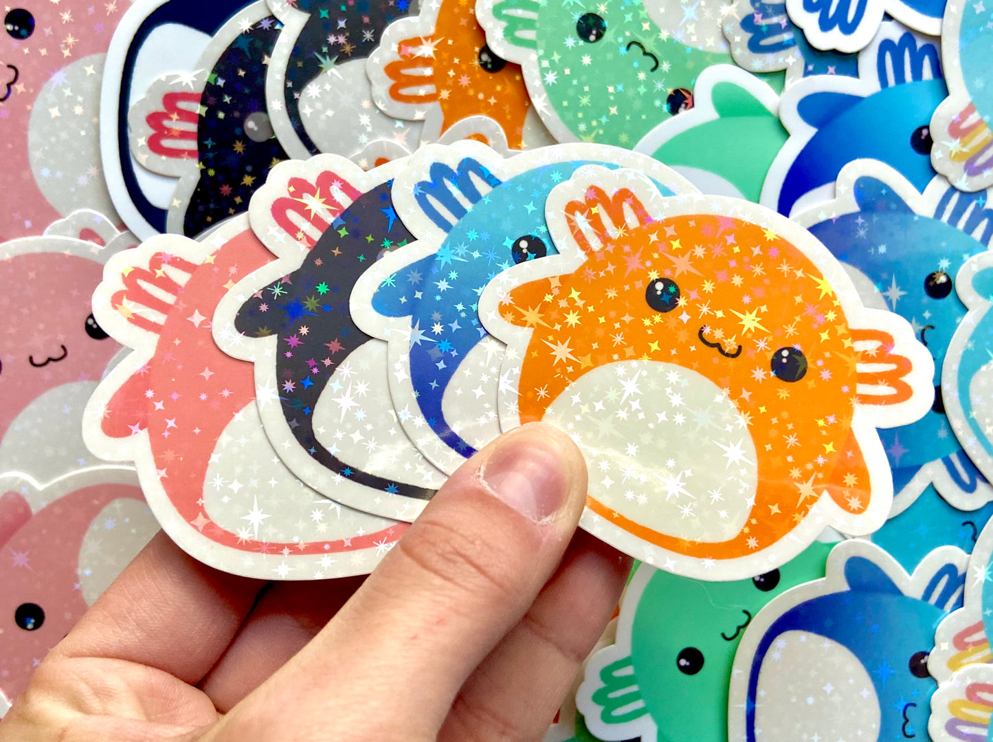 Sparkle Stickers are printed on top quality sparkle paper, but are not sealed with laminate, so make sure not to put them in the wash!